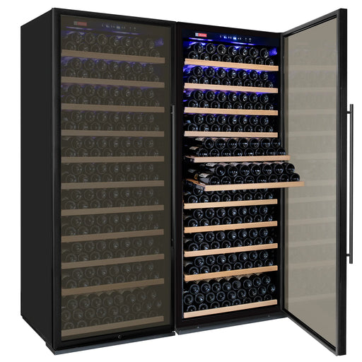 Spacious Vite coolers are suited for large collections 63.0" W × 78.5" H × 27.5" D Black french doors mounted on opposing hinges Dual cooling zones...
